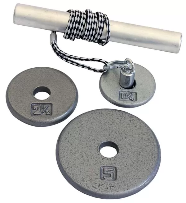 - Includes: 1.25lb, 2.5lb, and 5lb grey 1″ regular plates