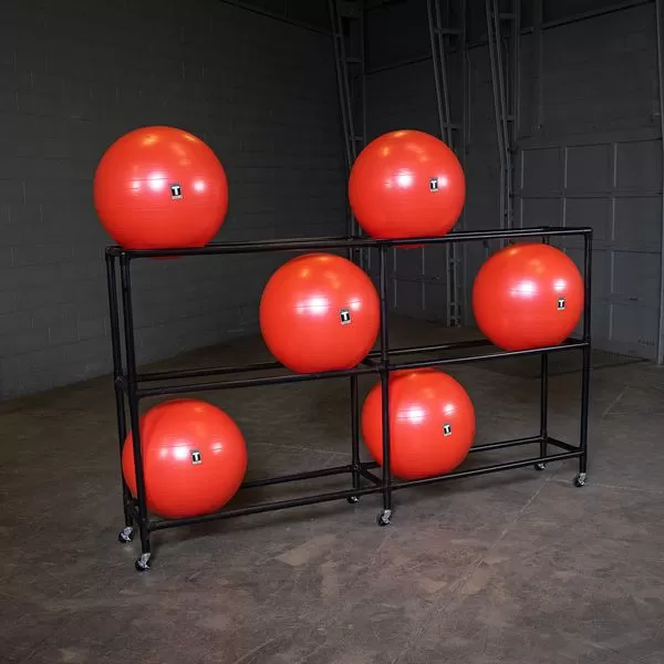 Tiered storage on the SSBR200 Stability Rack helps organize stability balls by color and size and features a horizontal design for increased storage capacity. Durable plastic tubing helps maintain stability ball integrity while the convenient storage increases safety by keeping equipment off the floor. The Body-Solid SSBR200 Stability Ball Rack features locking caster wheels for easy transportation.