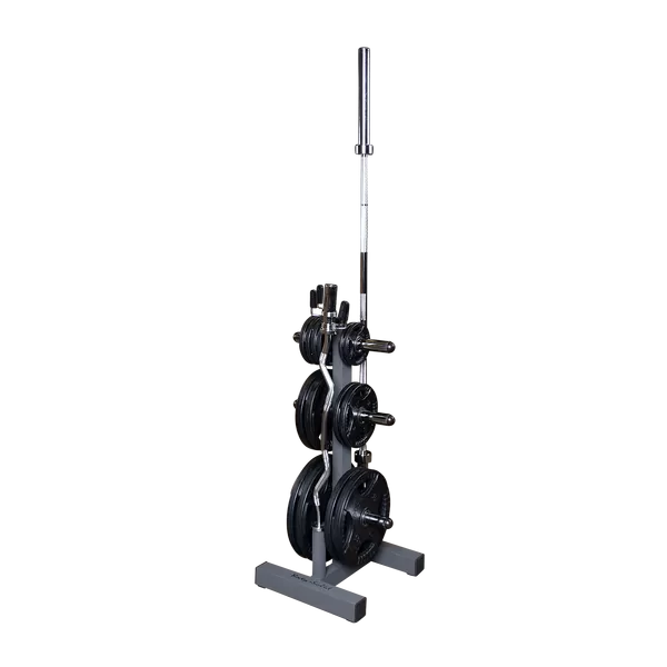 Heavy gauge 2″x 3″ and 3″ x 3″ welded steel construction. Six triple chrome plated Olympic weight plate storage posts. Super-tough ABS plastic ball-end storage post caps provide quick and easy alignment for weight plate loading. Four rubber foot tabs riveted on to bottom of base frame to protect your floor. Textured powder coat finish hides dust, dirt and finger prints. 2 bar holders, 1,000 lbs. weight capacity.