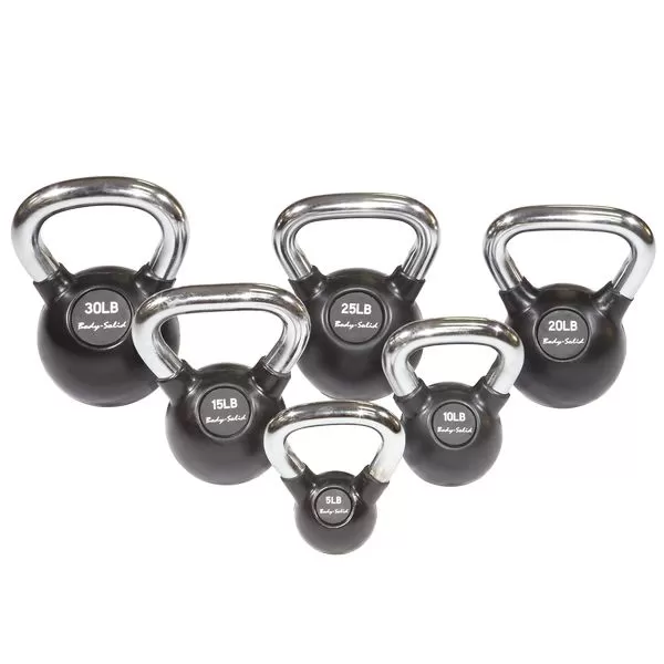Body-Solid Premium Kettlebells Set are available in 5 lb. increments from 5lb. to 75 lbs. Purchase a complete set for variety and a steady progression to the intensity of your workouts.