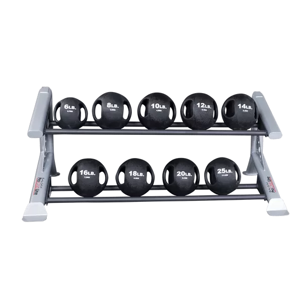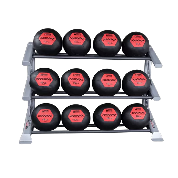 The SDKRMB Medicine Ball shelf can hold a variety of BSTMB Medicine Balls, BSTDMB Dul-Grip Medicine Balls, BSTSMB Soft Medicine Balls or BSTHB Slam Balls. The SDKRMB shelf has a width of 59″. Use the chart below to determine the approximate amount of medicine balls each shelf can hold.