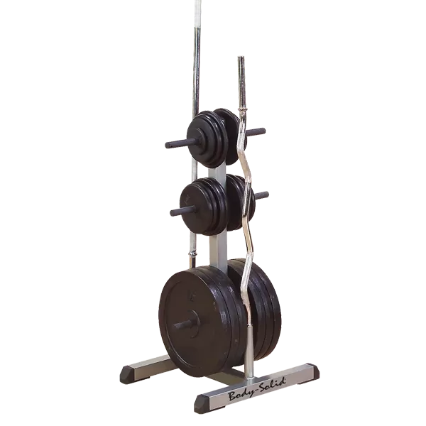 Keep your workout area safe, clean and organized with this Standard Weight Tree & Bar Rack from Body-Solid! Six 1″ x 8″ weight plate storage posts keep plates safely suspended off the floor for easy storage and removal and can hold up to 1,000 lbs. of weight. Two standard bar holders keep bars upright. Designed with central weight load distribution that virtually eliminates the risk of tipping. Features heavy-duty 2″ x 2″ high tensile strength steel with all-4-side welded construction and finished with ultra-tough electrostatically applied powder coat finish. 40″H x 20″L x 23″W
