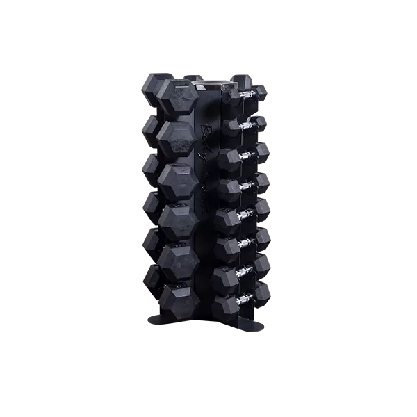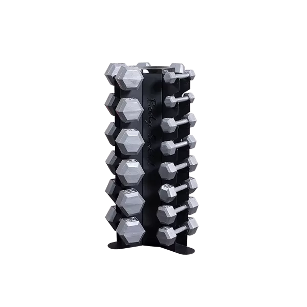 Body-Solid’s GDR80 Body-Solid Vertical Dumbbell Rack features vertical storage for 10 pairs of dumbbells, keeping workout spaces clean, organized and safe. The GDR80 conveniently holds up to 10 pairs of hex dumbbells of any size under 50lbs, and is perfect for home or studio use. A perfect fit for a 5-50lb hex dumbbell set, the GDR80’s compact vertical storage minimizes floor space compared to horizontal racks.