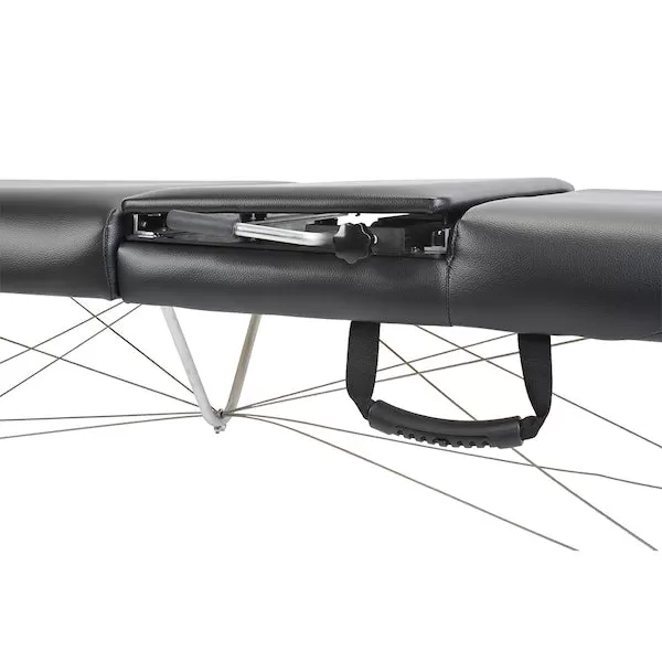The reinforced headpiece, permanently connected cable system, and aircraft aluminum tubing means that the table is both durable and lightweight. No need to worry about sliding or tipping with the wide stance legs and no-slip-feet. The table also includes the ChiroLux CarryCase made from heavy duty lightweight nylon canvas with a large external pocket, an internal storage pouch, as well as two signature backpack straps and side handle.