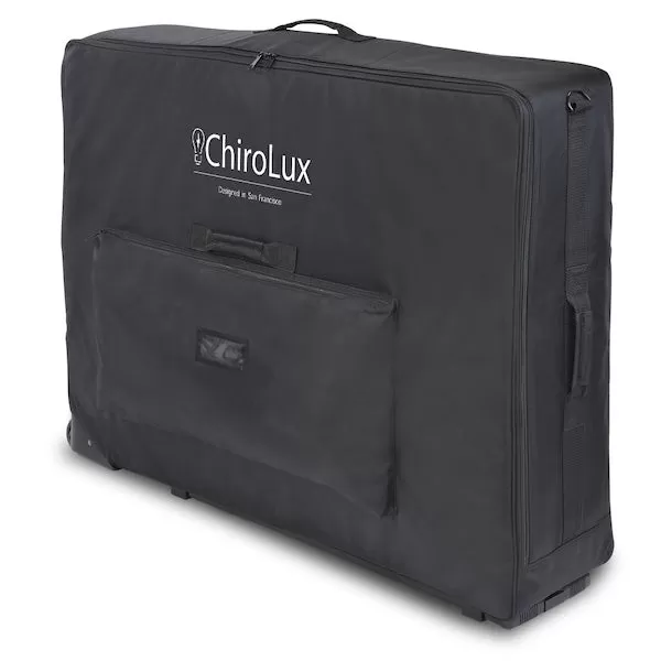 The ChiroLux Sprinter Case features a patented design created specify to take your Max Table or massage table anywhere with total freedom. It’s innovative design allows for a 2 in 1 options- carry or role! In addition, two standard handles are added to both the top and side. The Sprinter Case also features a removable shoulder strap. To use the wheel function, just pivot, pull and go. The bag includes a large external pocket and internal storage pouch for easy storage.