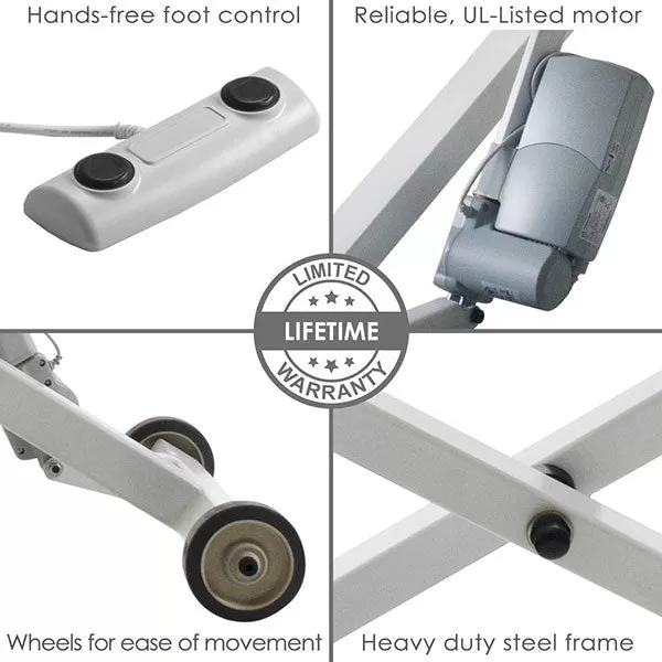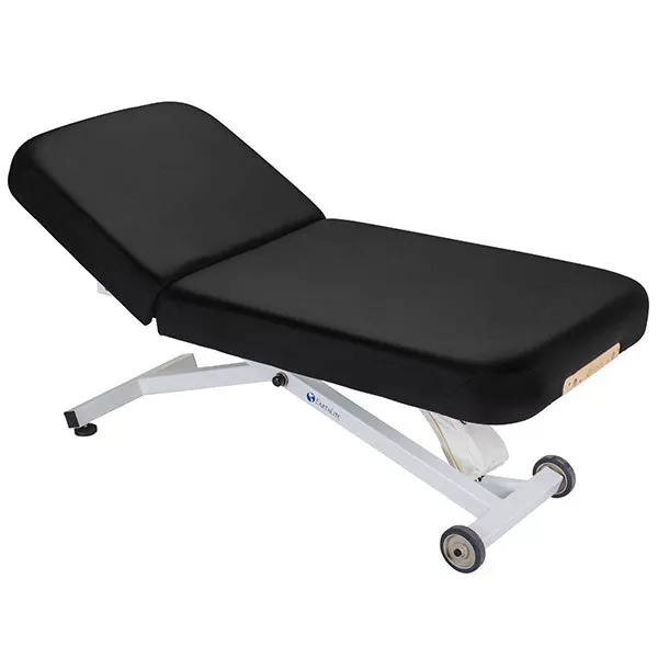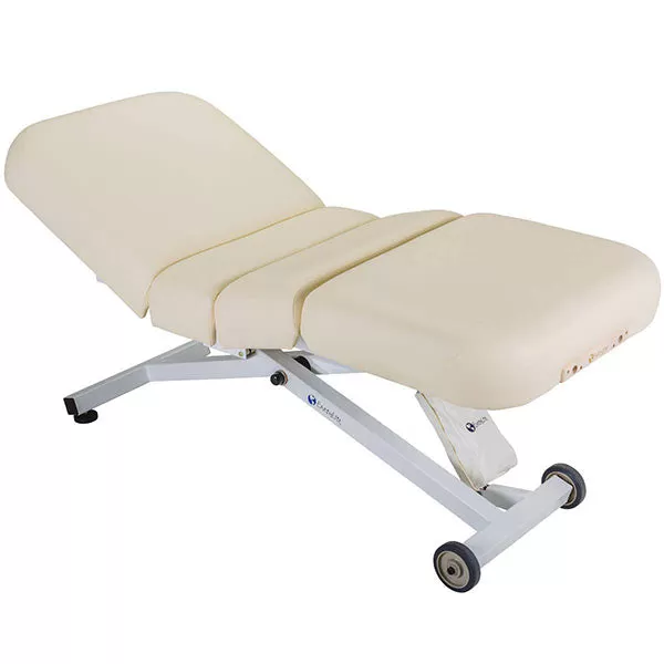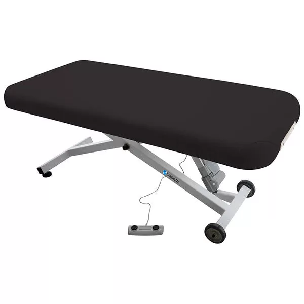 The Ellora Electric Lift Massage Table is the Earthlite’s quietest and most popular spa hydraulic lift massage table. The Ellora™ electric lift table is designed for comfort, long-lasting reliability, easy-care, and great performance making this table a superb value. The Ellora features a heavy-duty steel frame, a Pro-Plush Deluxe 3 later 3″ cushioning system, and wheels for ease of movement. Choose between 5 different tabletops and 3 different widths to customize the Ellora to fit your every need. The Electric Salon is also available as a Package.