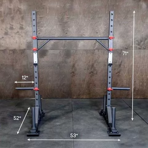 - Set the pullup/yoke bar to 14 different heights. When set to highest setting, the bottom of the pullup/yoke bar is 74.5″ off the ground- and the top of the bar is 76.5″ off the ground.