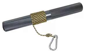 Made of 2″ diameter knurled high-strength steel, it can be used in free-standing mode or on a 1″ or 1-1/16″ bar, where its slick bushing system gives it a smooth ride. Comes with an 10-ft., 1,000-lb. test rope and a small carabiner; add a loading pin (not included) for easy weight changes.