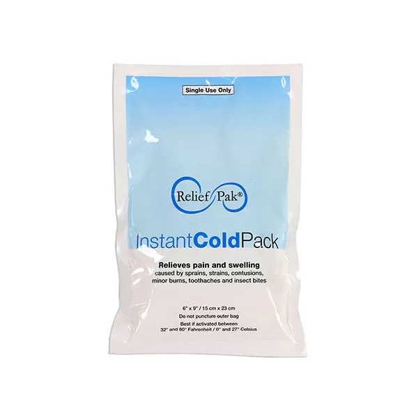 Instant cold pack becomes 34 degreesF in just 3 seconds just by squeezing the bag. Cold is achieved through safe chemical reaction. Bag is double-lined