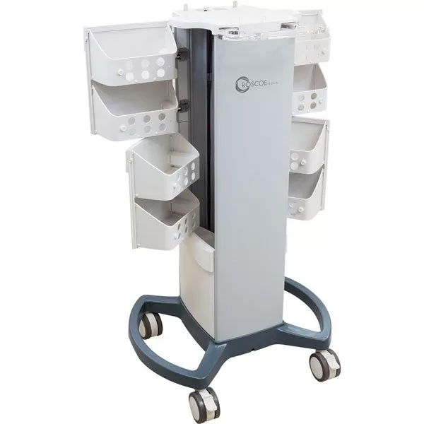 The Richmar TheraTouch Clinical Cart is a state-of-the-art rolling cart with double side drawer and storage. The cart will fit the EX4 or CX4 Clinical Devices and offer the practitioner a wide range of mobility options with four wheel rolling motion capabilities. The wheels have an easy-to-lock brake system that can be pressed with the foot.
