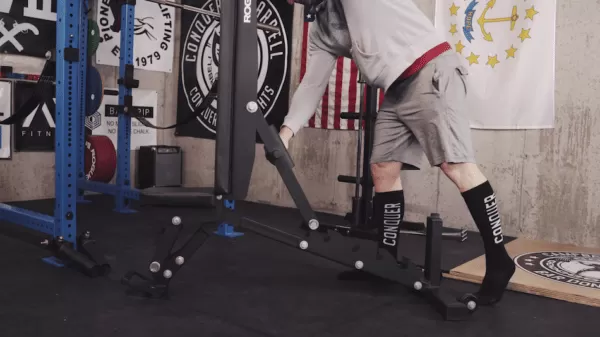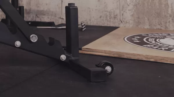 - The front of the bench features a post that allows the trainees legs to tuck under without interference.