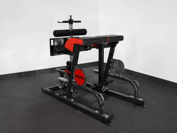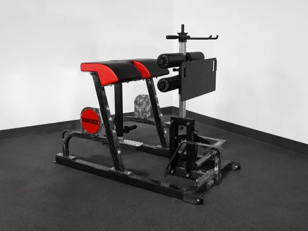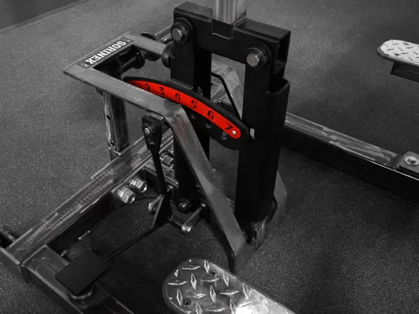The Sorinex Original Frankenhyper was created in 2013 and combines the Glute Ham with a pendulum hip extension. Add plate storage, ball storage and a tab for handles that allow you to increase upper body work capacity, and you have a monster posterior chain training machine that only takes up a few square feet of space in your facility.