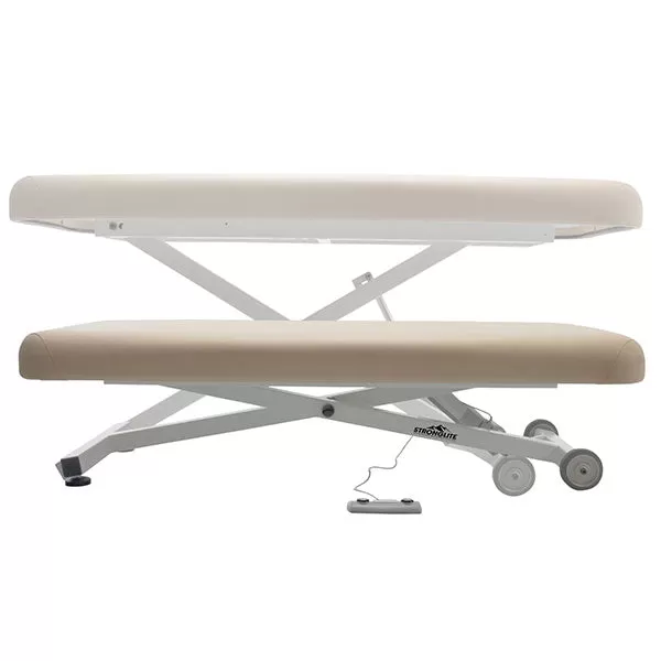The Stronglite Erfo Lift Table is one of the best valued electric lift tables out there! With an easy to use foot pedal and ADA compliant height adjustments (18” – 37”), the Ergo Lift™ is convenient for the client and the practitioner. The Stronglite Ergo Lift Treatment Table features a rugged steel frame, durable Nature’s Touch upholstery in Beige, a reliable UL listed actuator and a comfortable massage top offer years of trouble free use. Choose between a flat top or manual tilt tabletop option.