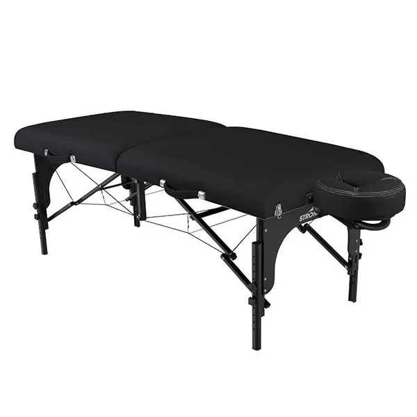 Confidence, Comfort, Convenience, and Beauty put the Stronglite Premier Portable Massage Table at the top of its class. The Premier massage table can be used for most modalities and is especially recommended for deep tissue work or vigorous styles such as Thai massage, sports massage, and rolfing. The Power Lock Support System is the strongest on the market. The Center Beam reinforced table top lets you work as vigorously and deep as you want and the beautiful Espresso finish on the frame is standard for a spa-quality appearance. For optimal comfort, you can expect a deluxe 3″ triple density cushioning system that all clients will love. Included in the Premier Portable Massage Table Package are Premier Portable Massage Table, Flex-Rest Platform with Strata FacePillow, and Professional Carry Case.