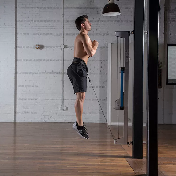 For vertical jumps, back pedal, side pedal, skaters, squats; all under dynamic resistance.