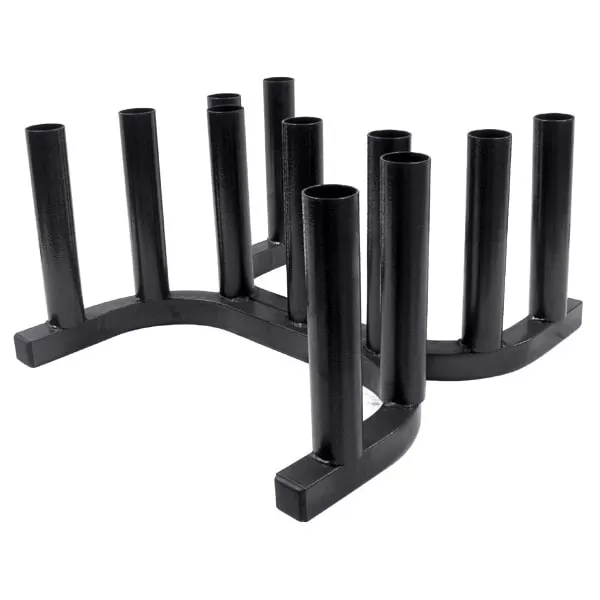 This weight bar stand is perfect for commercial settings and holds eleven 2” Olympic barbells vertically. This bar holder is made of commercial grade steel and the shape prevents tipping while loading and unloading the barbells. The small footprint frees up floor space and the attractive black finish compliments other equipment. This stand is a great alternative for fitness clubs that are not able to hang barbells on the wall and makes it easy for users to choose a bar. The double sided format allows for easy access from either side.